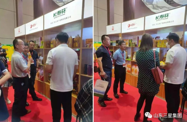 展會現場,參會人員不時來到長壽花展區,與工作人員洽談咨詢,了解長壽花系列產品特色。與會領導對長壽花品牌也給予了高度關注,濱州市工信局相關領導駐足長壽花展臺前,仔細詢問研發創新及品牌發展工作開展情況,并對濃香玉米油產生了濃厚興趣,聞香識油,現場互動,高度贊賞了長壽花專注高端綠色產品研發制造,貼近消費訴求,堅持創新、用心打造放心糧油品牌,強力推進健康廚房戰略,呵護國人廚房健康與安全的理念和做法。